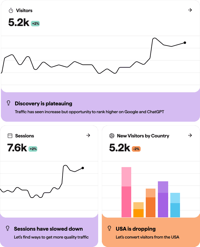 GA shows you the numbers but stops there. It does not tell you which problems are worth fixing or what your next step should be. You either guess or spend hours trying to piece together insights from different reports.