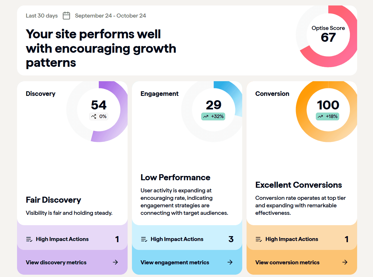 Most analytics tools only report data. Optise helps you improve. It highlights what matters, explains why it matters and gives you clear suggestions on what to do next.