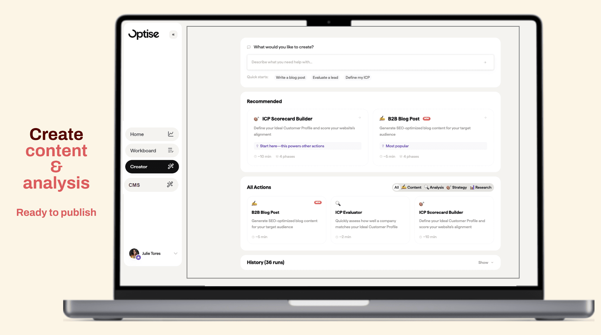Teams get behaviour driven analytics. They get a content creator to produce SEO and AI engine optimised pages. They get an easy to use CMS and a collaborative workboard. Everything is built around helping B2B teams ship improvements in minutes rather than weeks.